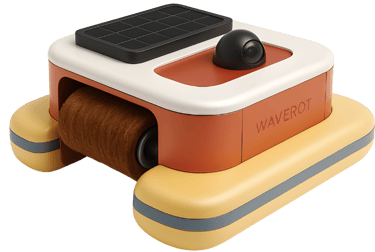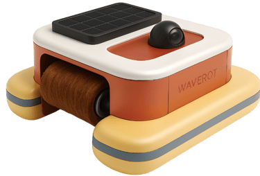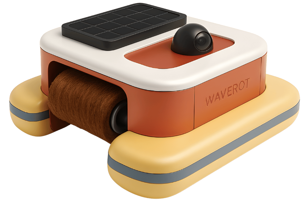 Built from biodegradable materials, Waverot operates through high-efficiency solar panels and a renewable lithium battery, allowing continuous function both day and night. Guided by AI-powered navigation and a subtle light system, it moves intelligently even under low-visibility conditions.